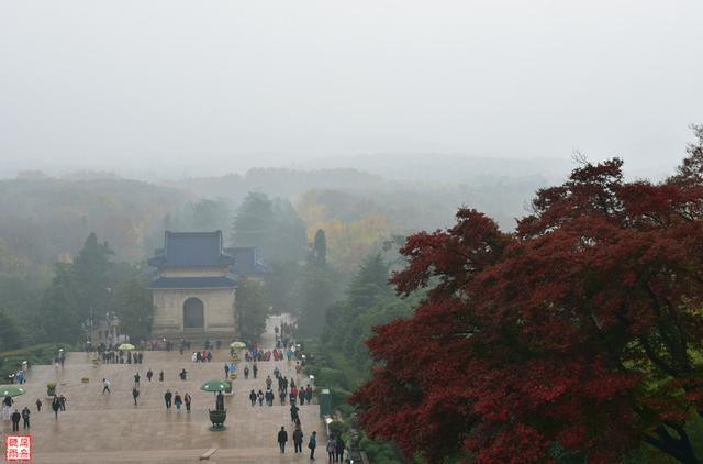 A finales del otoño, la lluvia suave y la cortina de niebla sombría no pueden detener los pasos y el entusiasmo de las personas que ven a adorar a los heróis. El arco de la tumba de Zhongshan se llama Bo Ai Fang, es la entrada al extremo sur de la carretera de la tumba, la puerta media del arco de la puerta está grabada con la palabra "Bo Ai" escrita a mano por el Sr. Zhongshan.