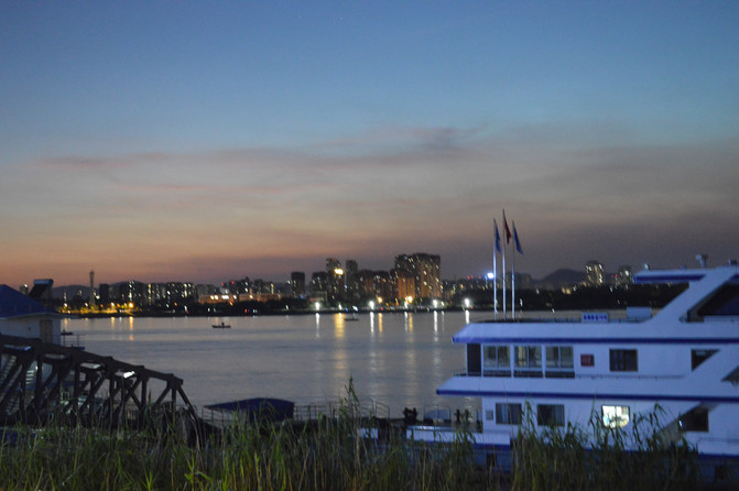El paisaje nocturno del río, ahora la prosperidad de Jiangbei también ha hecho algo de iluminación para el río Yangtze.