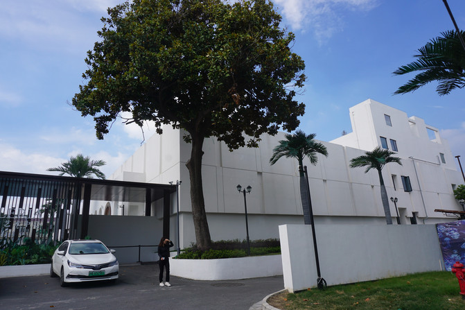 Al salir de la piscina y adentro, hay varios edificios blancos. Aquí está la compañía que opera un servicio integral de bodas, cada edificio tiene su función diferente. Solo nos divertimos, tomamos fotos, no visitamos el interior, disfrutamos de este hermoso edificio exterior.