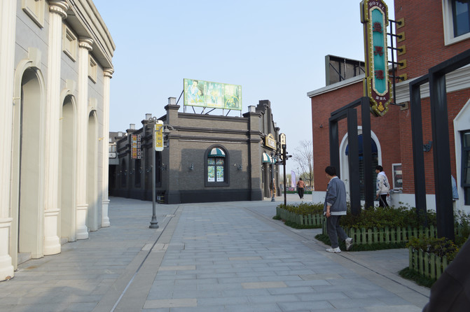 Este es el bloque de Huayi Brothers (Nanjing) Film Town. La cuadra no es grande, dar un paseo alrededor de media hora. El tema de la cultura cinematográfica desde el punto de vista arquitectónico está arraigado en la rica y colorida cultura local de Nanjing. En términos de contenido, hay un barrio integral de la ciudad que integra funciones como experiencia de entretenimiento, teatro de artes escénicas, restauración especial, hotel temático de cine y tiendas culturales. Pero en realidad, muchas de las escenas que vemos hoy están en un estado cerrado. Pero la plaza de palomas blancas y un pequeño patio de juegos para niños son muy populares. El bloque es de entrada gratuita, pero el parque infantil tiene entradas individuales. Debido a que un amigo vive cerca de dar un paseo, afortunadamente no vino a propósito para ello.