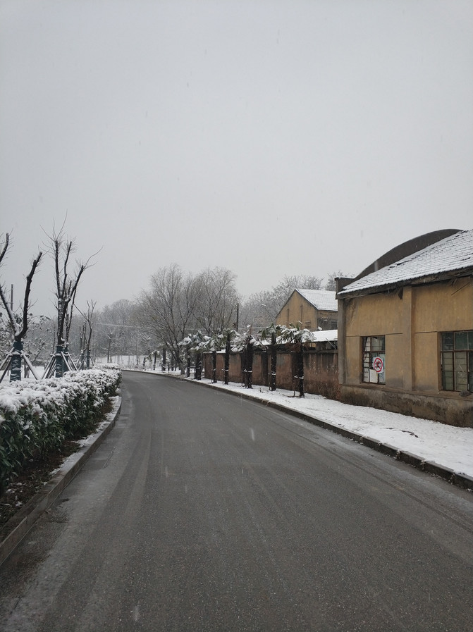 La primera nieve en 2020 llegó de repente, y la tierra de nieve durante la noche se ha cubierto ligeramente con una capa delgada. Esto es menos emocionante para mí, que acabo de regresar del norte helado y nevado de Jilin. Sin embargo, la nieve en Nanjing todavía es una vista inusual, y esperar una nieve en el sur es deseable. Ya que llegó inesperadamente, todavía tenemos que disfrutar de uno de ellos. Aunque la nieve todavía estaba flotando, la nieve no era grande ni densa, decidí ir a trabajar en bicicleta eléctrica. Esta elección se debe a que quería caminar desde el parque deportivo y ver las vistas nevadas allí. Subo directamente cuesta arriba desde la calle Zhongshanmen hasta el extremo este de Dongwazi Road.