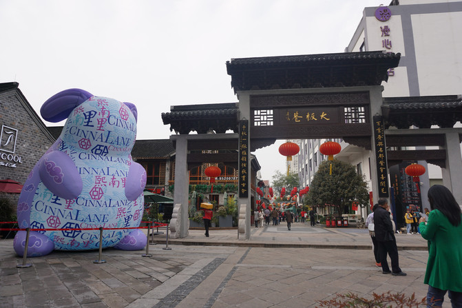 Un amigo recomendó un peluquero en Shengzhou Road. Los dos años han estado aquí para cortar el pelo. Cada vez que viene al al mediodía, viene y va apresuradamente. Mirando este callejón de estilo de palacio en Shengzhou Road tampoco una vez. De vez en cuando, el círculo de amigos vio que el 18 de octubre había una feria "South, Shifang Market" en este callejón. Por lo tanto, el día de corte de pelo está programado para este día. Reservado el tiempo para el corte de pelo, pero debido a la demora en la última parada en Nantu, perdió el tiempo de reserva. Cuando llegué a la tienda, el peluquero ya estaba ocupado, otros clientes tenían que esperar, justo cuando me di la vuelta y fui a Daban Lane para dar un paseo, porque estaba preparado, así que llevé mi cámara. En la entrada de Paifang en el lado sur de Daban Lane, una lámpara de color de copo de casi 6 metros de altura, llena de un sentido de la moda moderna, nos da la bienvenida encantadora.