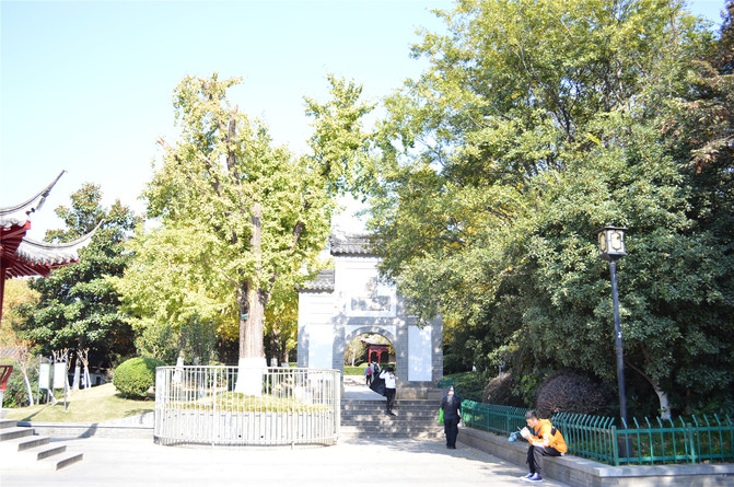 En el jardín hay un pabellón de "lápides de padres e hijos". Una gran estela de piedra en el pabellón, con escritura borrada, fue erigida por Daoguang Jiawu Chun: la tumba de Zhongxiao Bian Gong, padre e hijo de Jin.
