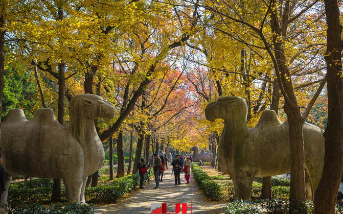El otoño de Jiangnan llega tarde, pero en la carretera Shixiang de la montaña Zijin, es el primer lugar en la ciudad de Nanjing para formar la atmósfera hermosa del otoño. A partir de finales de octubre de cada año, Shixiang Road comienza a tener hojas amarillas, luego hojas rojas, y luego hojas de ginkgo que caen con el viento. Formó un mundo colorido de oro, amarillo, naranja, rojo, verde y otros colores. Las 24 bestias de piedra blanca en el camino de los elefantes de piedra se acostaron en silencio en el color. Los 600 metros más hermosos, el verdadero nombre no es falso.