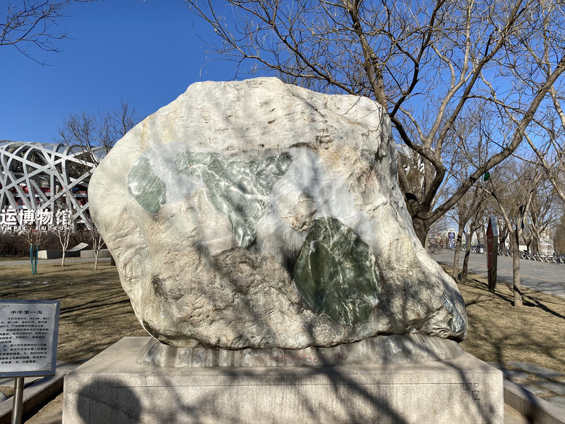 La imagen muestra el jade del pabellón del nido de pájaros del estadio olímpico, el primer jade de China, ubicado en el lado sureste del nido de pájaros, que pesa 21 toneladas de jade Kunlun.