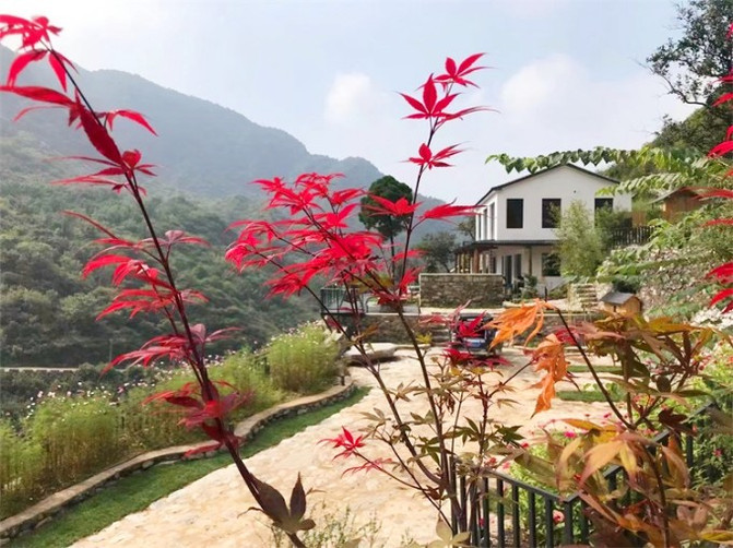 La habitación en el segundo piso tiene una gran bañera con vistas a la montaña, puede acostarse en la bañera mientras se baña y observa la vista de la montaña, si le gusta la tranquilidad puede sentarse en el sofá, frente a la montaña, beber una taza de té caliente, mirar el paisaje en la distancia, los turistas aquí pueden sentir el aliento natural, el arroyo frente al patio, el patio detrás de las montañas verdes dependen, el ambiente elegante y cómodo. El estilo arquitectónico general de la residencia es un estilo pastoral, un gran lugar de actividad, un complejo de alta calidad e instalaciones de entretenimiento completas.