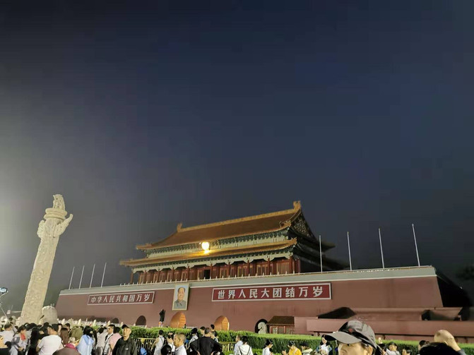 Frente a la torre de Tiananmen, fue testigo de que la línea de la mañana se acercaba paso a paso, y la brisa subió a la torre poco a poco. Frente a nuestros puestos de guardia, el temperamento frío y la profesionalidad de los militares son admirables. La bandera nacional se eleva, el himno nacional suena, el lugar más suave en el corazón de todos es golpeado, el orgullo se une con el himno nacional y se eleva a la cima juntos.