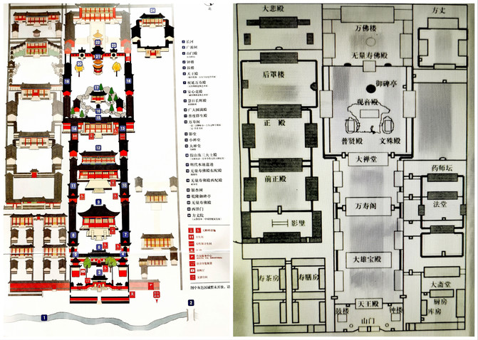 Mapa de guía del Templo Wanshou (Museo de Arte de Beijing) Diagrama esquemático del antiguo Templo Wanshou
