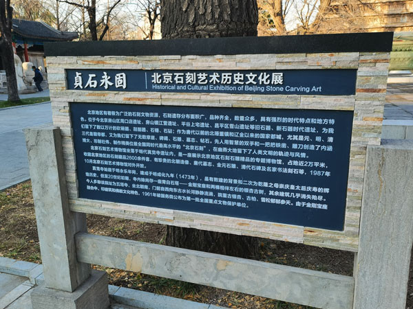 La sala interior del museo de esculturas de piedra incluye "exposiciones de información del templo Zhenjue", "Hombre y piedra - una breve historia de la escultura de piedra", "Exhibición al aire libre de la escultura de piedra y la escultura de piedra en el área de Beijing", etc.