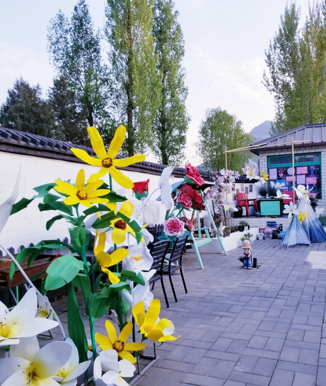 Con un gran patio cuadrado en estilo jardín, dispuesto con grandes dispositivos florales, entrar en el patio es como un mundo de cuentos de hadas, adecuado para perforar tarjetas para tomar fotos.