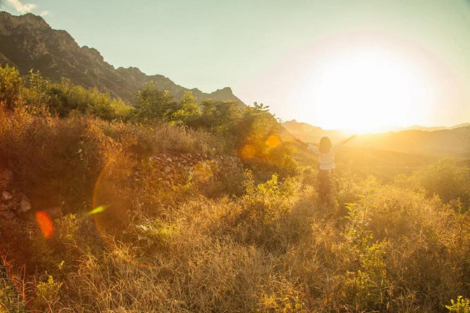 Hay una "plataforma de observación" relativamente plana en la mitad de la montaña, cuando el sol comienza a salir y el cielo pálido cambia lentamente y se vuelve rojizo. El sol naciente, esto es algo que ha sucedido todas las mañanas durante miles de años, pero cada vez que la gente tiene un movimiento indescriptible. El resplandor dorado del sol naciente se inclinó sobre la Gran Muralla no muy lejos, agregando un reluciente poder misterioso a la Gran Muralla.