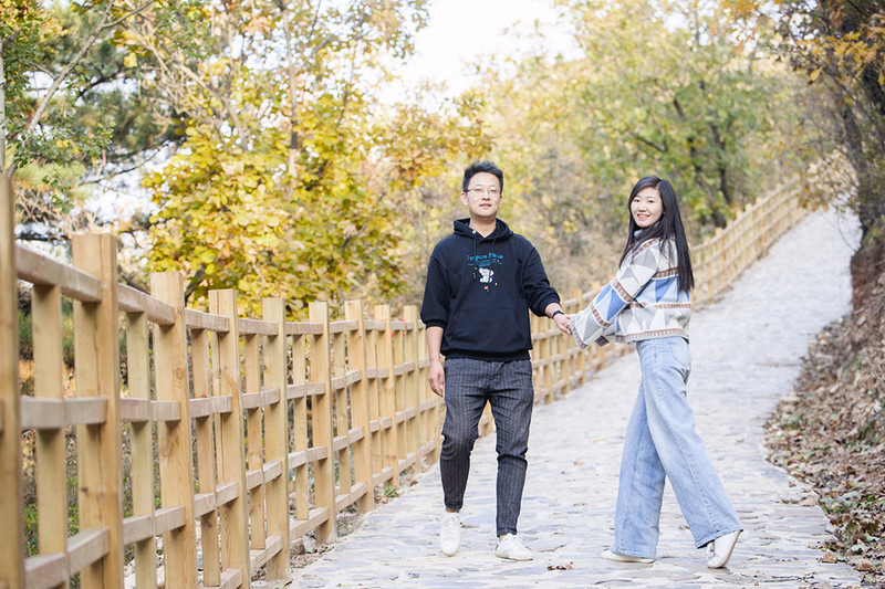 Las hojas del árbol se volvieron un poco rojas, el sol alrededor de las 4 p.m. es cálido, a través de las hojas rojas, la luz en ese instante también se suavizó! Mi novio me tomó algunas fotos, este otoño, realmente feliz ~ ~