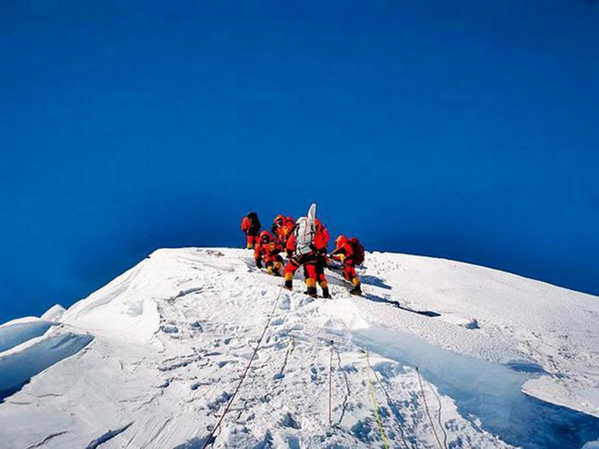 El 27 de mayo de 2020, ocho miembros del equipo de montañismo de levantamiento de elevación del Monte Everest escalaron con éxito la cima y llevaron a cabo con éxito varios trabajos de levantamiento de la cima.
