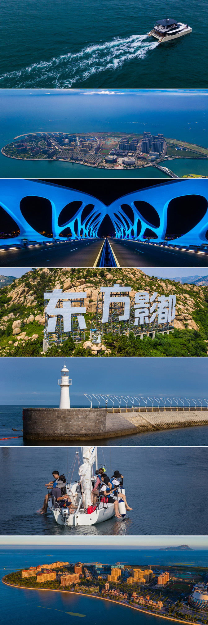 Frente al mar, con un corazón azul, apareció una isla así frente a mí, es hermosa, es interesante, es el tipo de lugar que se enamorará al pisar, me gustaría usar la imagen del tiempo para grabar el lugar, está justo delante de mí, la isla de la estrella, posicionada en la capital de cine oriental de Qingdao.