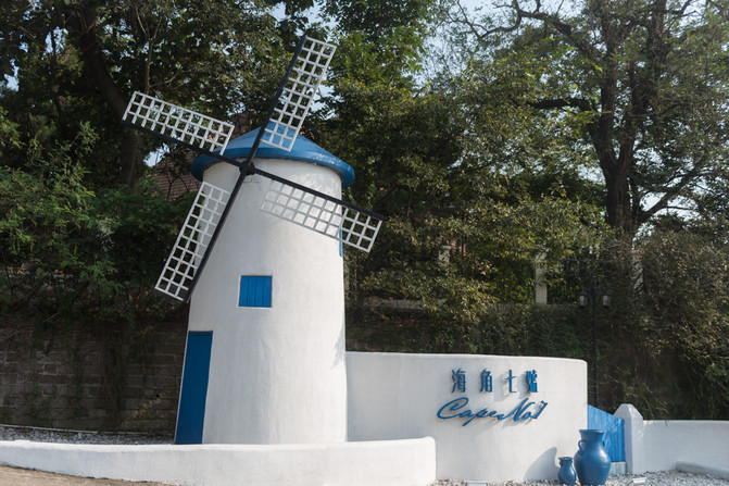A solo una calle de Song Mansion, Haikiao No.7 es uno de los hoteles residenciales más hermosos de la provincia de Shandong. Los molinos de viento en tonos azules y blancos, fácilmente evocan a Santorini, Grecia.