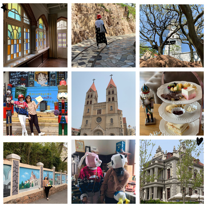 D1: 4 / 30 Pasalleón _ Iglesia Católica de Zhejiang Road _ Estudio de Qingdao _ Restaurante Chunhe Lou _ Museo del Antiguo Sitio de la Prisión Alemana _ Longjiang Road _ Antiguo Sitio del Edificio del Gobernador General Alemán _ Weihai (nueva casa de una amiga)