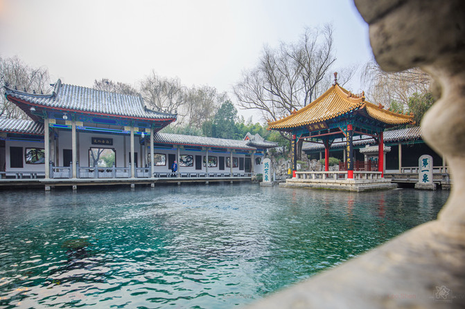En el norte del parque hay un edificio de la dinastía Song "Patio de Fuyuan" y un edificio de la dinastía Ming "Pavilión de Guanlan" en el suroeste.La estela de piedra que se erige en el agua frente al pavilión, con las tres palabras "Fuente de Fuente de Fuente", también está disfrazada con sauces colgantes comunes en Jinan junto al agua del manantial, mostrando un hermoso paisaje como Jiangnan.