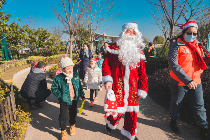 El Jardín de Padres e Hijos de Jigao-Jing tiene un tema diferente cada mes, y la Navidad se acerca, y el Jardín de Padres e Hijos de Jigao-Jing también está lleno de un aire navideño. Ya sea el muñeco de nieve exhibido en la entrada del Reino del Tesoro Conejo, el alce y el carruaje con luces de colores colgadas, o el enorme árbol de Navidad de Lollipop en el césped central del Reino del Tesoro Conejo, todo está lleno de una sensación de cuento de hadas navideño.