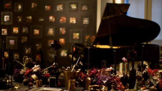 Los 40 pares de cubiertos en la escena en realidad representan los 40 restaurantes con estilos muy diferentes, pero impresionantes. Todo fue diseñado por Mona. Ella me dijo en secreto que tenía un montón de platos en su casa. Debido a que le encanta el diseño de los platos, su esposo dijo que puede lavar los platos en 365 días sin lavarlos en casa.