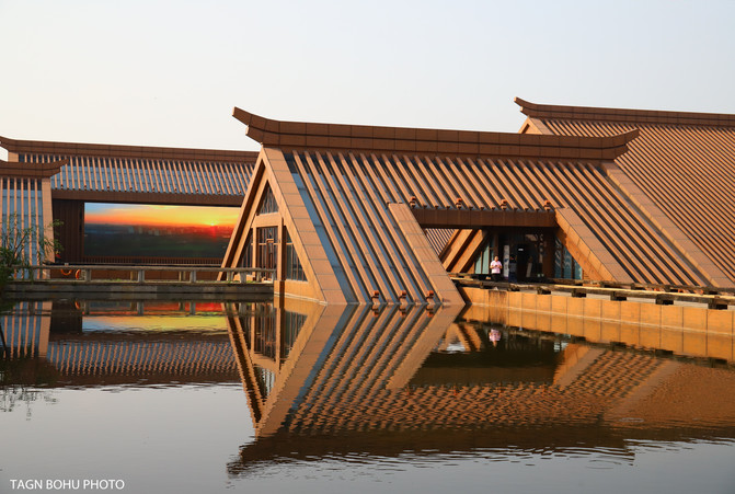 En una amplia superficie de agua abierta, las casas flotan en el agua como si crecieran en el agua. Las líneas de los edificios afilados parecen estar pasando por una inundación, y las casas parecen estar sumergidas bajo el agua, exhibiendo solo las crestas triangulares. Aquí es la sala de exposiciones de cultura submarina de Guangfulin.