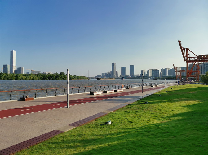 Regresa hacia el oeste a lo largo de Binjiang Avenue y disfruta de la vista de la orilla del río Xuhui.