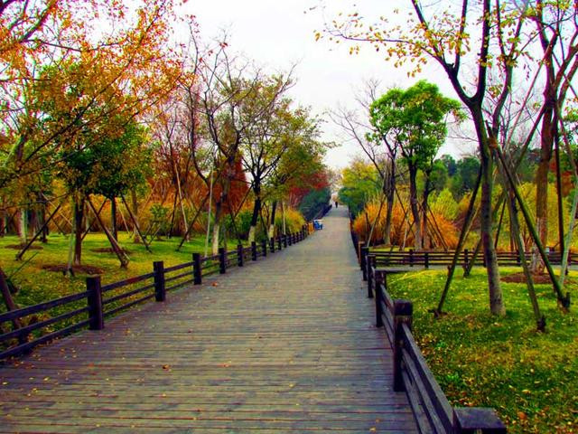 El parque de humedales también tiene un estilo de campo acuático en el sur del río "Wanzhu Garden", que es el jardín sur del parque. Con el tema de la "cultura del bambú", el Jardín del Bambú Wan está diseñado para crear un hermoso paisaje de bambú de "rima del bambú del sur del río, claridad y tranquilidad". El paisaje del jardín de bambú, las montañas verdes y los bosques, el arroyo tranquilo, el puente que fluye, la colofonia de bambú verde, formó un paisaje natural lleno de bambú de " amanecer claro y hermoso, la luna clara". El edificio principal del jardín de bambú está en estilo Ming y Qing, que contrasta con el pequeño puente que fluye, y parece tener la belleza de venir al pueblo acuático del sur de Jiangnan.