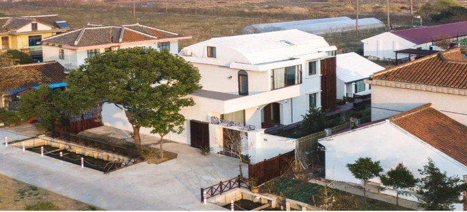 A través de los exuberantes bosques a ambos lados, a lo largo de los sinuosos caminos rurales, caminando a través de campos de arroz, se puede ver "un toque blanco en los arbustos verdes" en la distancia. Al igual que un velero a punto de salir al mar, en el campo parece particularmente llamativo, junto con el paisaje circundante, de vez en cuando conmueve la curiosidad de la gente. Entrando en la posada, puedes ver árboles frutales y flores en el patio, turistas relajados, ocupados propietarios de posadas, habitaciones limpias, abundantes instalaciones de entretenimiento, y un reino de paja escondido en el patio. Aquí, el tiempo se vuelve tranquilo y suave, y los recuerdos de la infancia parecen volver a aparecer ante nuestros ojos...