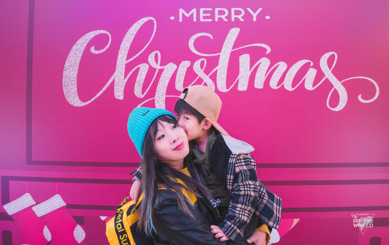 A las 10 de la mañana, cuando llegamos, nuestra familia se sintió atraída por el enorme árbol de Navidad en la puerta y ¡definitivamente tenía que tomar dos fotos hermosas! Al niño Allen, que amaba a los dinosaurios, atraído por los dinosaurios grandes y los jeeps en la puerta, exclamó repetidamente: "¡Wow!¡Eso es increíble!¡Tyrannosaurus!¡El tiranosaurio! "