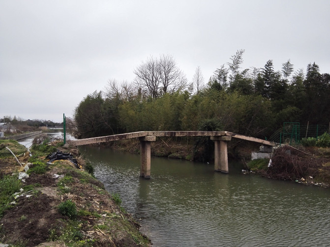 El puente de arco de cemento, que imita el estilo del puente Zhaozhou, fue construido en las décadas de 1970 y 1980, y es un puente común en los suburbios de Shanghai. La aparición de este tipo de puentes de cemento hace que el estrecho puente de piedra antiguo que solo puede ser usado para caminar y no para viajar en automóvil se retire gradualmente del escenario histórico del campo. Ahora este tipo de puente de arco de cemento ha sido reemplazado por puentes de vigas de cemento anchos y fuertes, y el puente de arco de cemento cada vez más en mal estado se ha convertido en un puente abandonado.