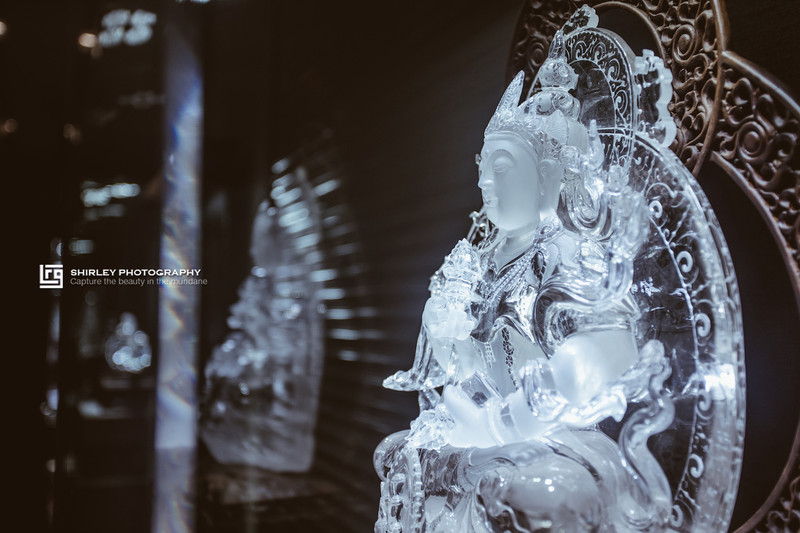 Los temas religiosos comunes, como el Buda reclinado, el Buda Maitreya y el Guanyin de las mil manos, se muestran a través del tema del cristal, y el reino "vacío" del budismo en sí se interpreta adecuadamente. El propósito de pulir una preciosa piedra de cristal no es mostrar habilidades, sino irradiar la luz cósmica que lleva la vida de cristal en sí, y dialogar con ella en las profundidades de la mente, alcanzando el estado más alto de "Dao-Dharma - Naturaleza, la Unidad del Cielo y el Hombre".