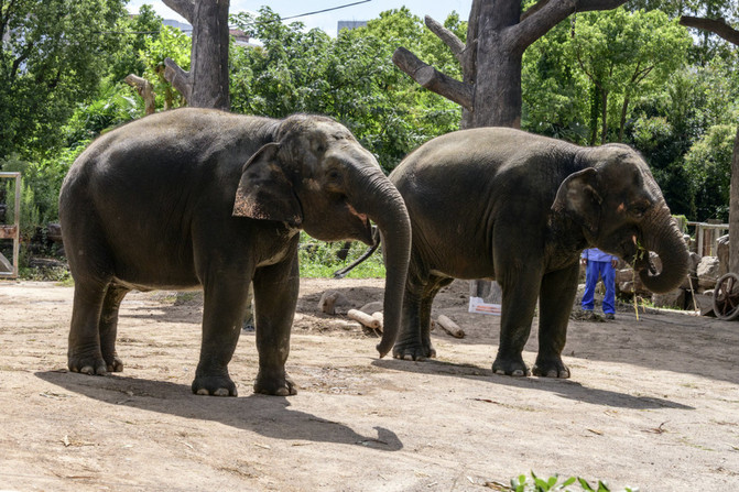 En el área de exhibición de comportamiento, los elefantes asiáticos demuestran colectivamente a los turistas sus habilidades de cuidado de casa: tiro, rociamiento de agua, etc., y están muy ocupados.