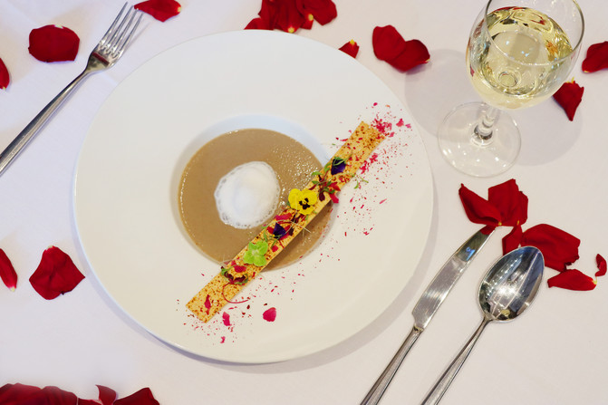 Pussylie salvaje, espuma de aceite de gallina, panquequeques de cacao