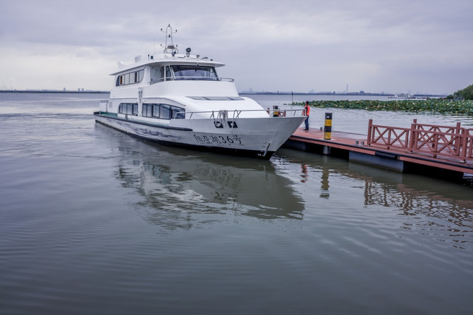 Tomando una lancha rápida desde el muelle de la isla de loto de Xiangcheng, puede aterrizar en el extremo oriental de la isla en menos de 20 minutos. En este momento, mirando hacia atrás a la orilla opuesta, se ha convertido en una línea en el cielo. La isla no solo tiene alta visibilidad, sino que también tiene un fuerte viento. Una hermana pequeña vestía una falda larga, un paraguas, cabello largo, flotando a orillas del lago, nos llevó al lugar donde el loto es más abundante.