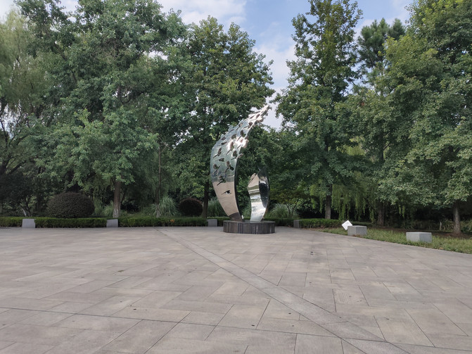 Aunque la escala no es grande, las hojas de loto de los campos están estrechamente juntas y son verdes y atractivas. Hay una escultura en la orilla del lago, en forma de luna, que no se sabe qué significa.