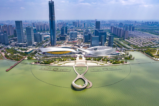 El Gran Teatro es el punto culminante de la Bahía de Suzhou. Tal vez lo que la ciudad del futuro es la apariencia de la Nueva Ciudad del Lago Taihu en la Bahía de Suzhou.