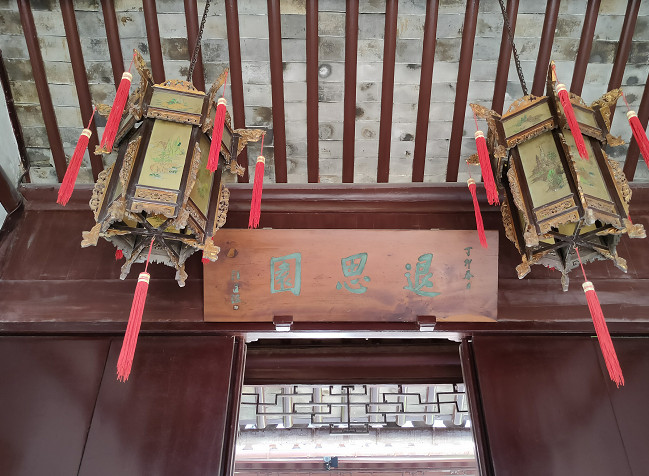 El salón de la casa de la familia es el salón principal del Jardín de Retiro, que se utiliza para recibir a los invitados nobles, llevar a cabo ceremonias de sacrificios a los antepasados y funerales de boda. Las tres palabras en la placa fueron hechas por Shen Peng, un famoso calígrafo. No puedo evitar tener un poco de orgullo en mi corazón, porque el Sr. Shen Peng es nativo de Jiangyin. La sala media también es un eje vertical, además de dos pares de coplas, la atmósfera es solemne.