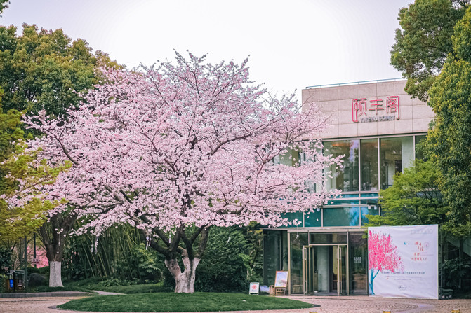 En marzo de 2023, el árbol de cerezo fuera del restaurante chino Yifeng Pavilion del Fairmont Hotel Yangcheng Lake sostiene un mar de flores blancas y rosadas, que experimentan la precipitación de cuatro estaciones junto con el hotel, cambiando de primavera esporádica a flores exuberantes y floreciendo deslumbrantemente en la orilla del lago Yangcheng.