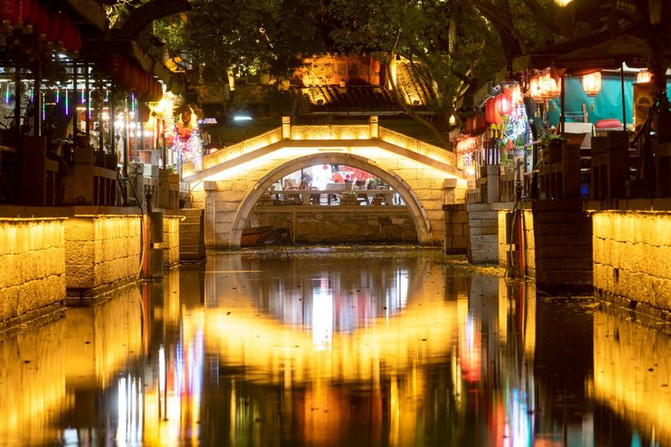 La ciudad antigua más famosa es Sanqiao, donde la gente tiene la costumbre de caminar por los tres puentes, casarse y cumplir con la vida; detenerse en la cabeza del puente para disfrutar de un espectáculo de pesca de la vida del pueblo acuático; en el escenario de la ópera antigua, las mangas de agua se manifiestan elegantemente, y el canto suave de la voz.