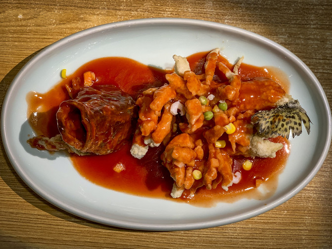 También.El viejo restaurante de té SuzhouPedido pescado de ardilla, carne de caracol de campo, gansos de agua salada, etc., ligero y refrescante, elogiado.