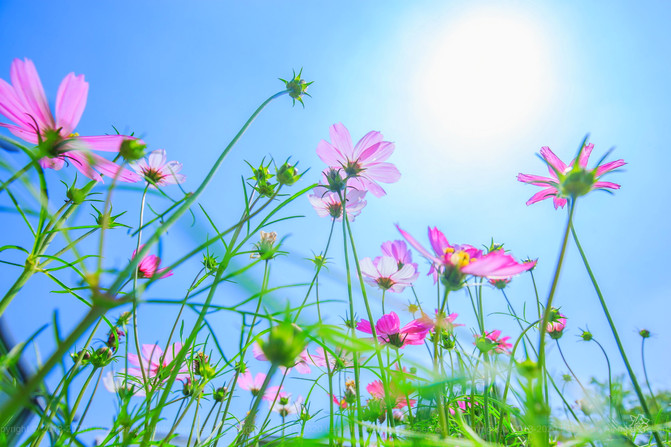 Las ondas azules, la brisa envía fragancia. Los pájaros deslizan los arbustos de flores y tienen una belleza encantadora.¿Hay una sensación conmovedora de que hay un paisaje tan hermoso que te espera?