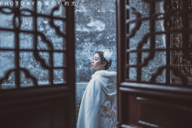 Vestido con un traje Han, viajó por el país del agua de los sueños, caminó por la antigua construcción de las dinastías Ming y Qing.