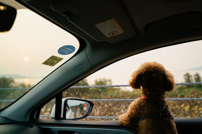 Sólo nuestro pequeño blanco en la avenida vacía, todo el camino para detenerse, la puesta de sol en el espejo retrovisor, el hueco dorado en el cuerpo, hermoso casi molestó a mí, la conductora, por razones de seguridad, o se detuvo a un lado, la familia se sentó en el amplio automóvil en silencio viendo el sol fuera de la ventana se hundió lentamente en el lago. Pequeño P puede estar cansado de jugar un día, especialmente trajo su pequeña manta especial, como un ángel pequeño en el cómodo asiento trasero para dormir.