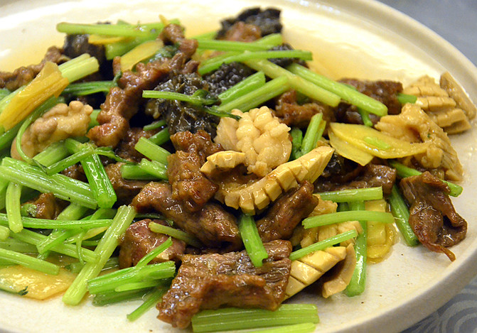 Jiumentou, este es un famoso plato Hakka, elige muchas partes de ganado, como hojas de ganado, carne de res, garganta amarilla, etc. cocinadas juntas, cada pieza de sabor es diferente, el sabor es excelente, es sorprendente, realmente digno de ser un plato famoso.