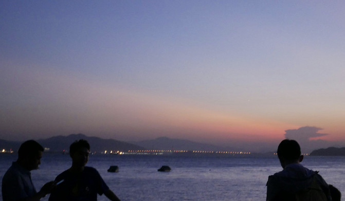 Gulang Island y la isla de la garza, el atardecer y la noche.