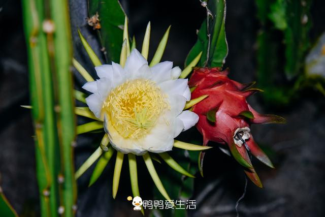También puede caminar en el campo y ver estas frutas de dragón de cerca. Muchos niños en la ciudad no saben que las frutas de dragón crecen de esta manera antes de florecer y frutar. Los brotes de flores se cierran en su mayoría durante el día, y florecen solo por la noche. La fruta del dragón pertenece a la familia de los cactos, generalmente florece por la noche, el mismo tipo de flor, una flor y una fruta, solo florece una vez, la forma, las características y las flores de corta duración son similares, por lo que esta hermosa escena de "floración de la flor" es rara vez vista, tiene un fuerte valor ornamental.