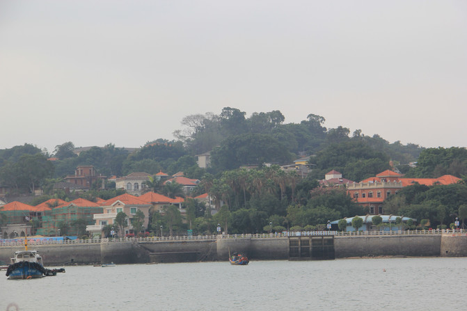 Después de bajar del barco junto con el flujo de personas en la isla, caminamos en el camino junto al mar, en la carretera, un grupo de ciruelas triangulares rosadas que se apresuran a salir de la pared, bajo la luz del sol, un hotel familiar de estilo europeo, edificios en el exuberante bosque, todo tipo de aves en el bosque vuelan libremente, cantando. Los enormes árboles de banyan están llenos de vitalidad, las raíces cuelgan una por una, formando una cortina natural, para mí que vivo en el norte, todo es tan nuevo.