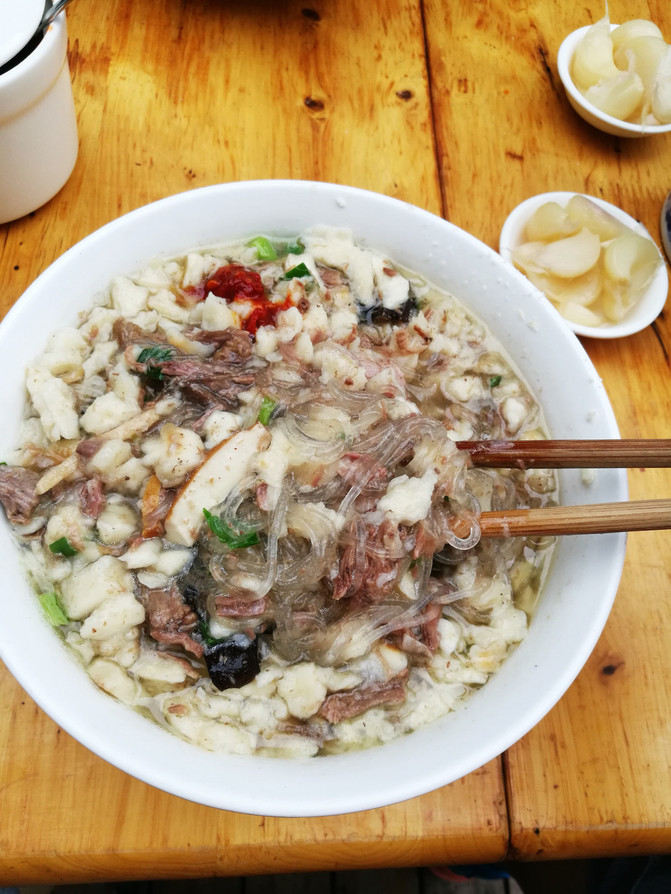 Por la mañana a Xi 'an, estación de tren, compró una tarjeta mensual de bicicleta compartida (10 yuanes), primero fue a la sala de sopa de espuma halal Yijunzhai (esquina noreste de la intersección de Wenjing Road y Longshou North Road) para comer sopa de espuma de cordero, andar en bicicleta a unos 3,5 kilómetros, muy poca gente, sabor fragante, hambriento, un poco de apetito hasta la noche, la tienda tiene un pequeño gato de leche, sopa de espuma es especialmente encantadora. Estaba comiendo sopa de espuma, llovió, no era grande, pero no era pequeño, esperó un rato, o se puso un impermeable desechable en la carretera.