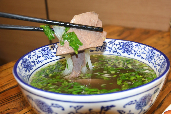 Además de una cuenca de cordero, se complementan con tres platos: ajo azúcarado, repollo picante y ácido y sopa de cebolla. Generalmente hay dos maneras de comer: puede remojar directamente el pastel en el tazón y comerlo directamente, y el otro es comer los ingredientes auxiliares en el pastel asado de media luna.