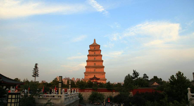 La Pagoda del Ganso Grande se encuentra en el Templo de Dacien. Fue construida personalmente por el Maestro Xuanzang. Es solemne y simple y testigo de la iteración de la historia con una postura tranquila. La torre tiene un total de siete capas (de donde se origina el botulmo de siete niveles para salvar una vida humana), más de 60 metros de altura, cada nivel exhibe diferentes reliquias históricas, las más preciosas deben ser las reliquias budistas en la sala de la torre del tercer piso y el valioso Sutra Bayle, estos son los preciosos tesoros budistas traídos de vuelta por el Maestro Xuanzang de las escrituras occidentales. En la torre, también se conserva el prefacio de la obra maestra del gran calígrafo Chu Suiliang, también conocido como "dos santos y tres monumentos excepcionales", que ha sido elogiado por los entusiastas de la caligrafía en las dinastías anteriores.