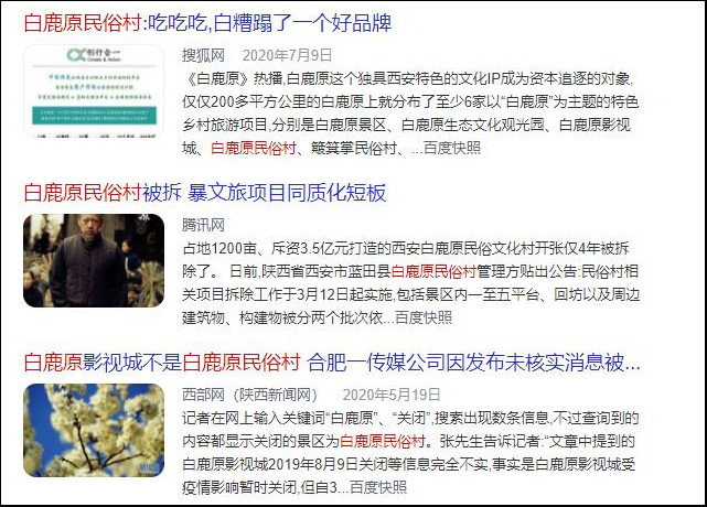 Como la IP cultural más conocida de Kanzhong, "White Deer" es muy buscado. En los últimos años, una serie de lugares turísticos temáticos han aparecido en Bailuyuan. Entre ellos, Bailuyuan Folk Village es el primer lugar escénico temático construido, pero de repente se cerró después de menos de cuatro años de operación, lo que causó una amplia discusión en la sociedad.